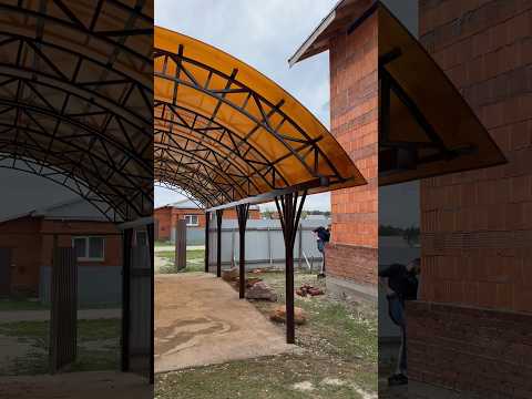 Навес для машины из поликарбоната во дворе частного дома #навесы #спецкаркас