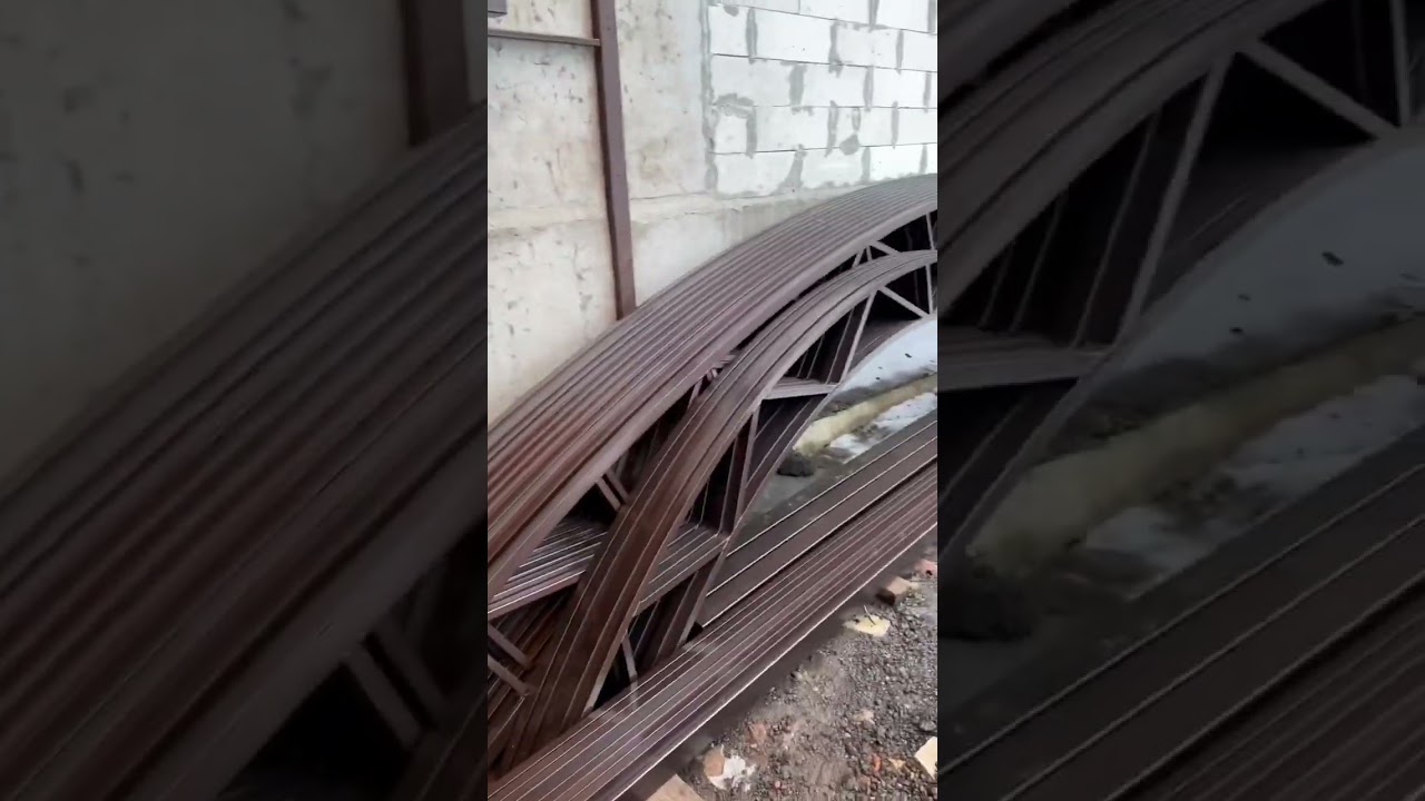 Приступили к сборке очередного комплекта навеса из поликарбоната с необычными стропильными фермами
